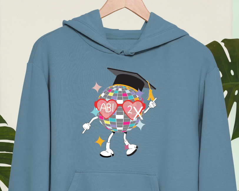 „A little party never killed our Abi“ steht für einen Jahrgang, der zwischen Lernen und Feiern den eigenen Rhythmus gefunden hat. Dynamische Typografie, Dance‑Silhouetten oder Party‑Symbole eignen sich ideal, um dieses Lebensgefühl einzufangen. Das Motto signalisiert: Ihr habt euch nicht verbiegen lassen, sondern euren Abschluss auf eure eigene Art erreicht – mit Stil und guter Laune. Perfekt für euer Abihoodie und ein individuelles Abishirt.