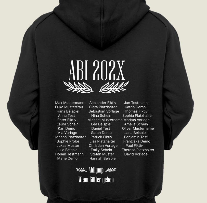 „ABIlymp - Wenn Götter gehen“ erhebt euren Jahrgang auf den Olymp der Absolventen. Antike Säulen, Lorbeerkränze, Statuen oder Blitze passen perfekt als Motiv, um das Gefühl zu transportieren, jetzt zu den Göttern des Schulabschlusses zu gehören. Ihr verabschiedet euch stilvoll aus dem alten Tempel Schule und steigt in eine neue Welt auf. Perfekt für euer Abihoodie und ein individuelles Abschlussmotto.
