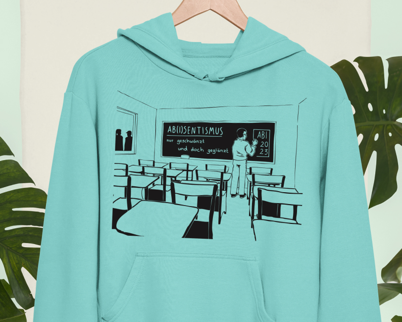 „ABIsentismus, nur geschwänzt und doch geglänzt“ ist ein originelles Motto, das euren Jahrgang charakterisiert und sich hervorragend für eine starke visuelle Umsetzung eignet. Wir entwickeln dazu ein Design, das Wortwitz, Symbolik und Farben passend zu eurer Geschichte kombiniert, sodass eure Abschlusstextilien dauerhaft in Erinnerung bleiben. Perfekt für euer Abschlussshirt und ein individuelles Abishirt.